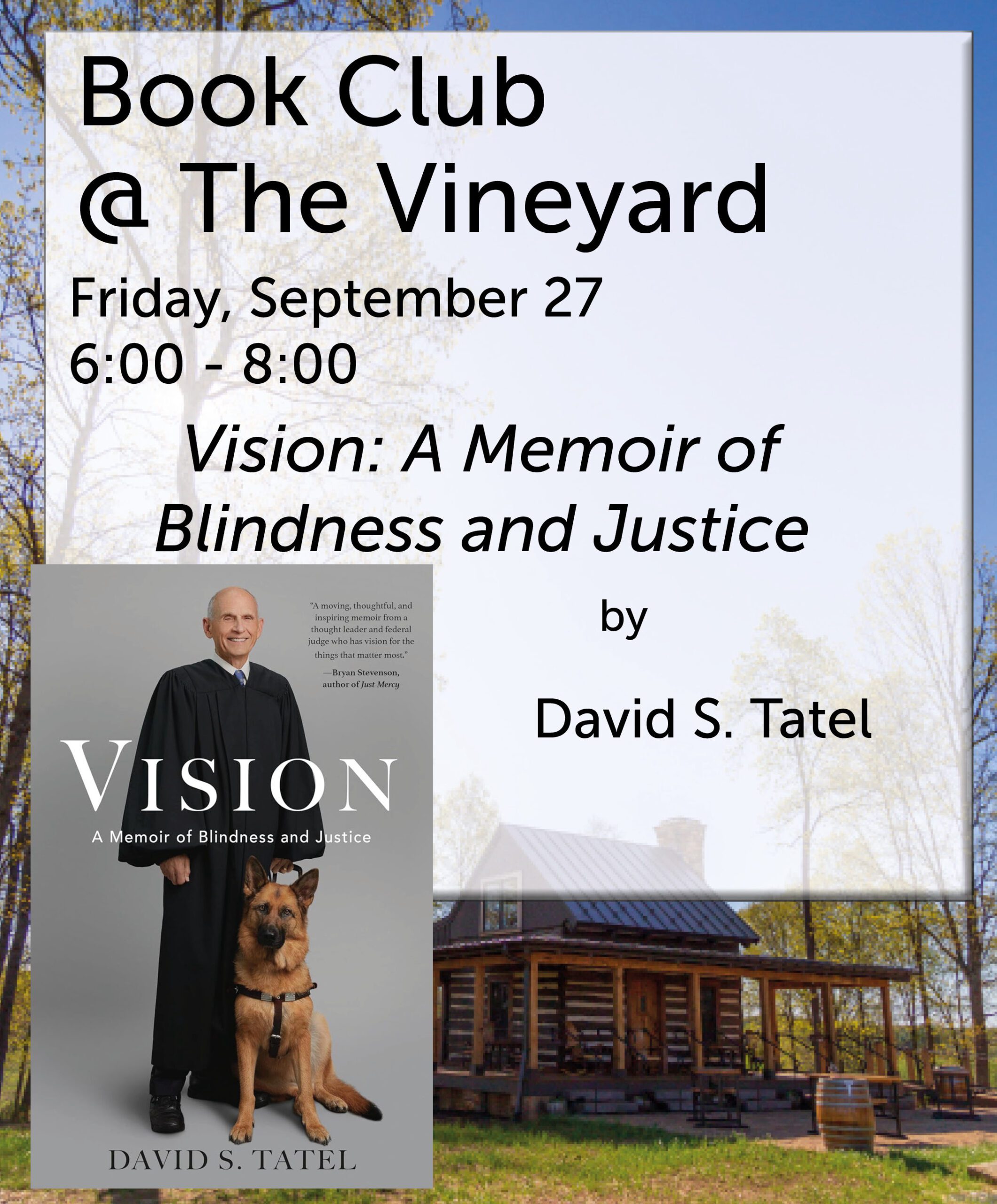 This month’s book is Vision: A Memoir of Blindness and Justice by David S. Tatel. We are so honored that Judge Tatel will be present at Book Club. Join us for a lively discussion!