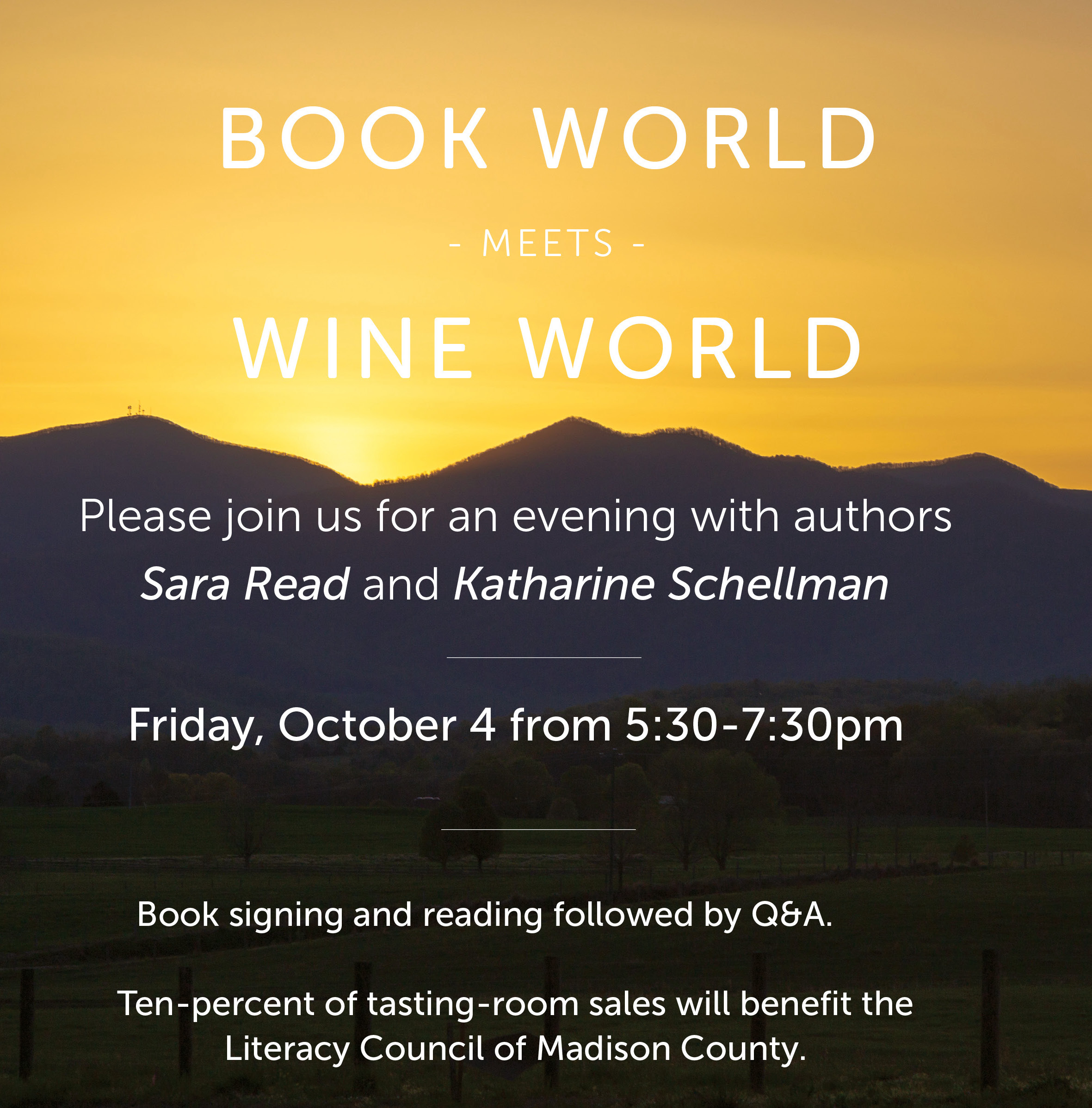 Book World Meets Wine World presents Sara Read and Katharine Schellman.