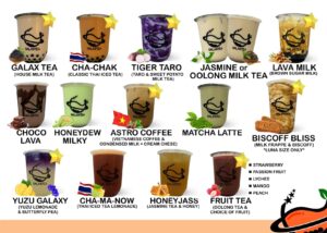 Serving up bubble teas. Galaxy is originated from the Greek word, meaning “milky,” combined with tea “milky tea” in English.