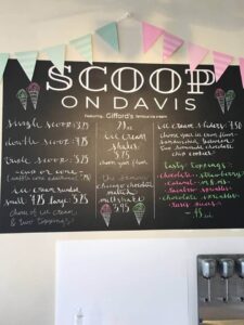 Scoop on Davis proudly serves Gifford’s Premium Ice Cream. Hand dipped cups, cones, milk shakes, sundaes and more – be sure to stop in to see us!